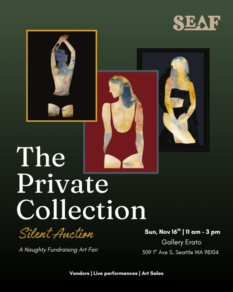 We are incredibly thankful to all our artists over the years who have donated art to Pan Eros Foundation Permanent Collection and the sponsors who have been generous with their donations to this auction. We are grateful to everyone who donates their time, services, and funds to keep our organization going. Proceeds of this auction will benefit the 2026 Seattle Erotic Art Festival.